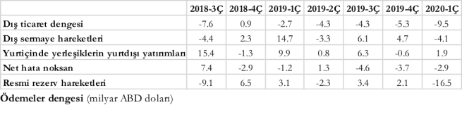 Ödemeler dengesinde 2020’nin ilk çeyreği