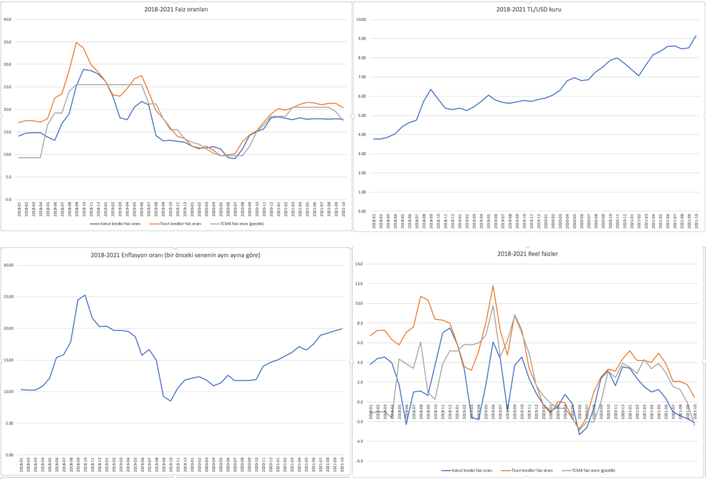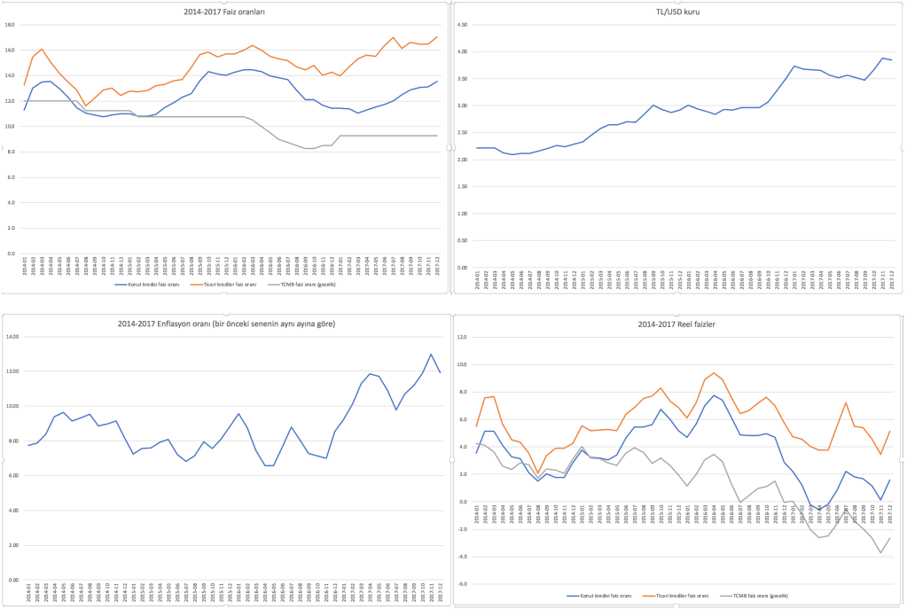 Dolayısıyla bu dönem, faizlerin mümkün mertebe düşük tutulduğu, buna karşın TL’nin ise neredeyse düzenli olarak değer kaybettiği bir dönemdi. Başka bir deyişle Türkiye ekonomisinin henüz çok sert olmasa da 2014-2017 döneminde bir faiz-döviz kıskacına girmeye başladığı söylenebilir.