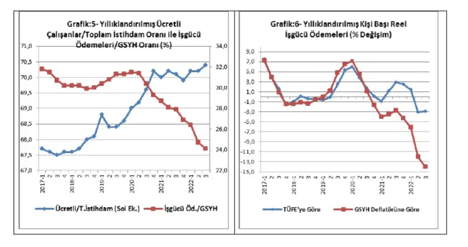 - 2023 başında yapılacak ücret artışları konusunda tartışmalar devam etmekte. Sermaye kesimleri reel gelir kayıplarının telafisine dahi direnirken büyümenin tüm maliyetinin çalışanlar üzerine yıkılmasında ısrarcı. Her halükârda sene başında yapılacak ücret artışları ücretli çalışanların durumunu geçici olarak bir miktar düzeltse de enflasyonun yüksek seyri bu artışların kısa sürede anlamını yitirmesine yol açacaktır. Buradaki soru, seçim yılında hükümetin ücret artışlarını hangi seviyede tutacağı olacak.