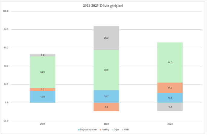 Şekil 1: 2021-2023 döviz girişleri (milyar ABD doları)