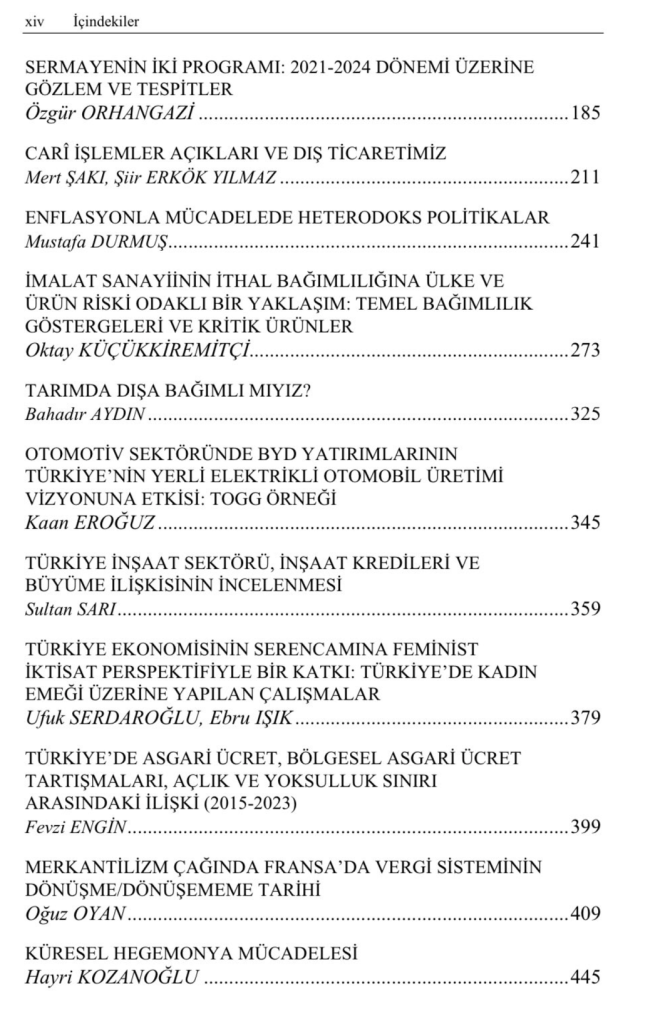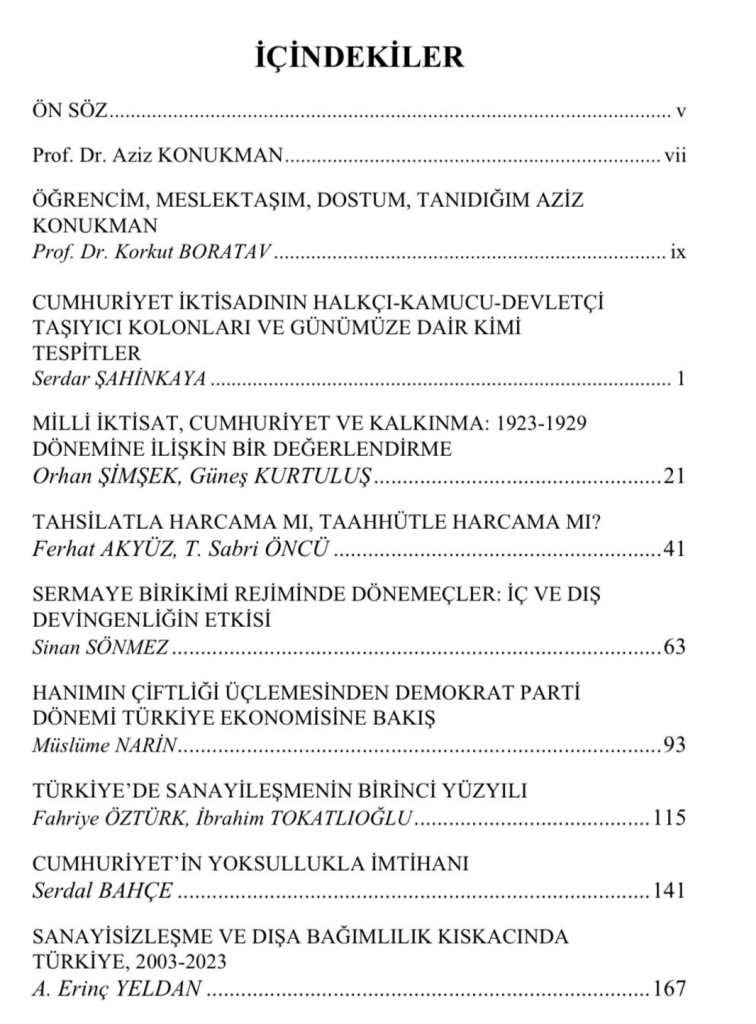 Aziz Konukman’a Armağan: Türkiye Ekonomisinin Serencamı‘na “Sermayenin iki programı: 2021-2024 dönemi üzerine gözlem ve tespitler” başlıklı bir bölümle katkıda bulundum.